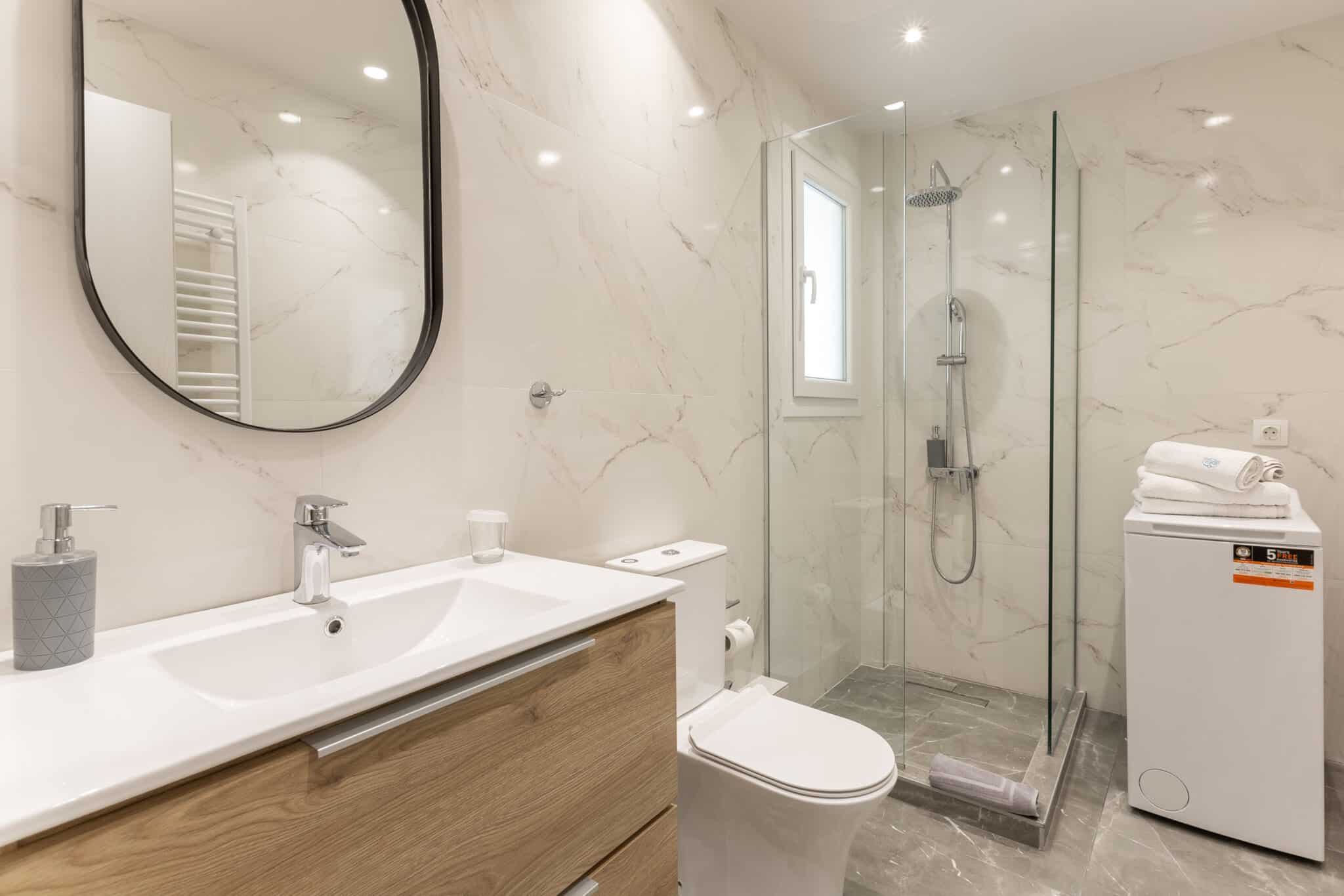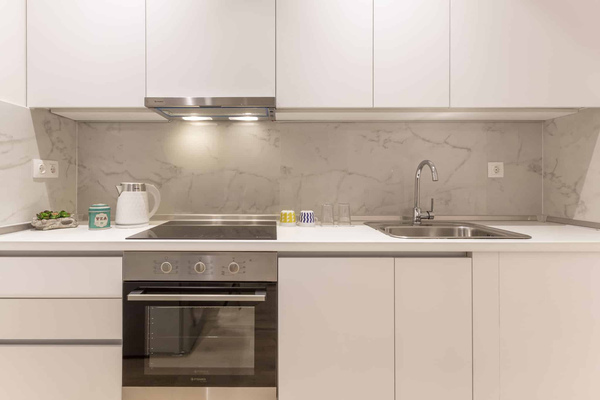 The apartment is fully air-conditioned and includes a modern private bathroom with a spacious walk-in shower. The well-equipped kitchen allows you to enjoy the flexibility of preparing your own meals, featuring a refrigerator, oven and electric kettle.