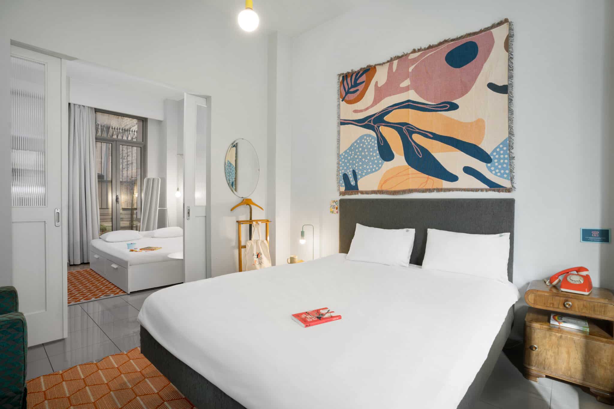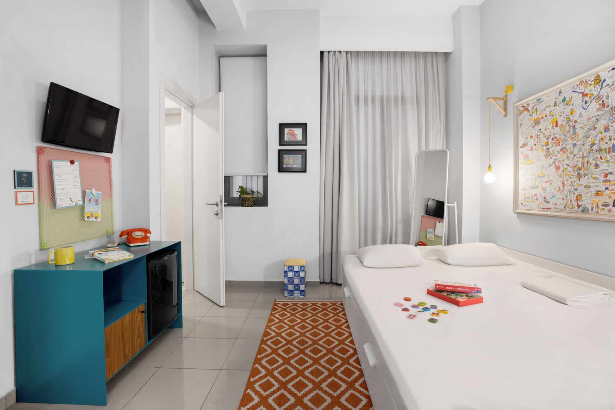 Family requires effort… and space! Our cozy Family Room is tailored to accommodate up to 5 persons, ensuring the peace and quiet essential for a successful family trip. This spacious, air-conditioned room features a satellite flat-screen smart TV, a safe, and an authentic caravan-antique dresser. The generously sized bathroom offers a comfortable shower and complimentary toiletries, with fresh bath towels always at your disposal.